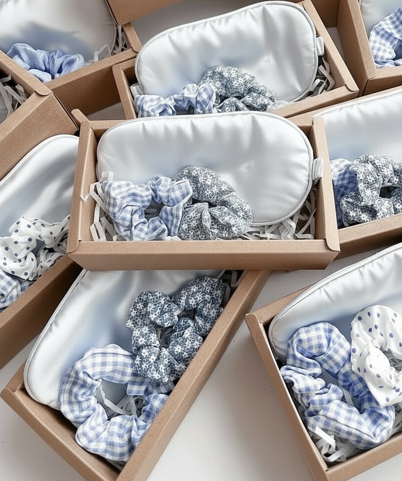 2 Adet Farklı Desen Saç Tokası (Scrunchie): Biri pötikare, diğeri desenli kumaştan üretilen saç dostu tokalar.